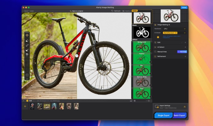 Aiarty Image Matting app maakt gebruikt van AI-modellen