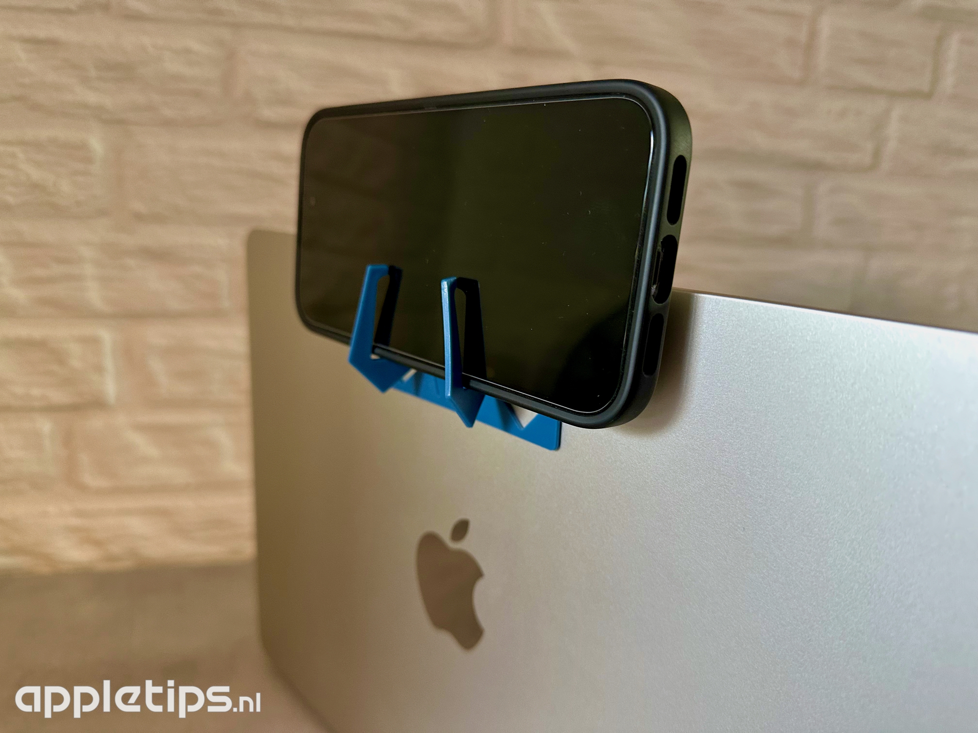 De MacBook Air heeft een dun scherm en het gewicht van de iPhone kan hierbij parten spelen. Uiteraard blijft de MacBook netjes opengeklapt, maar gaat wel wiebelen naarmate het scherm naar achteren wordt geklapt.