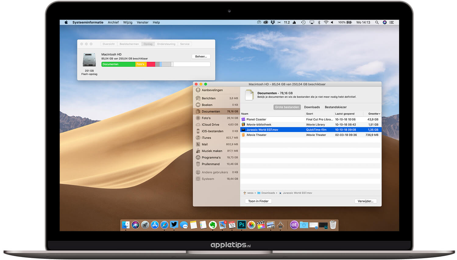Apple heeft een tool ingebouwd in macOS die je helpt met het opsporen van grote bestanden en biedt je de mogelijkheid om deze dan te verwijderen of elders te bewaren. Grote bestanden zijn meestal films of oude bestanden waarbij je de afweging kunt maken of je ze nog wel nodig hebt. Door ze te verwijderen of op een externe harde schijf te plaatsen bespaar je onmiddellijk opslagruimte.