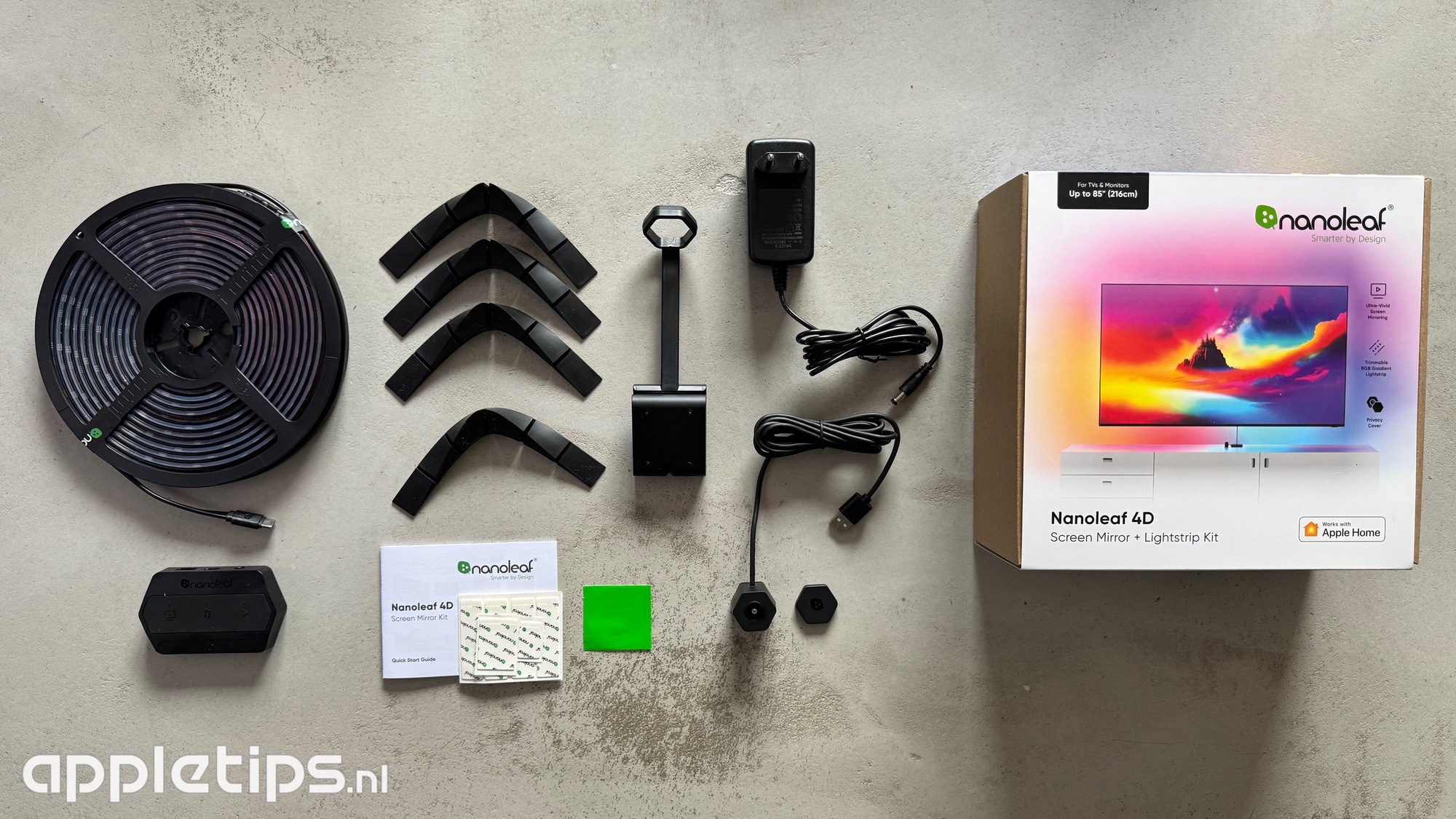 Om gebruik te kunnen maken van de 4D-functie van Nanoleaf kun je het beste een starterskit aanschaffen. Deze bevat een camera, ledstrip en ophangsysteem voor het lichtsnoer en de camera. Het is overigens geen vereiste om de starterskit te kopen, je kunt namelijk ook alleen de 4D-camera aanschaffen en deze koppelen aan je bestaande Nanoleaf-verlichting.