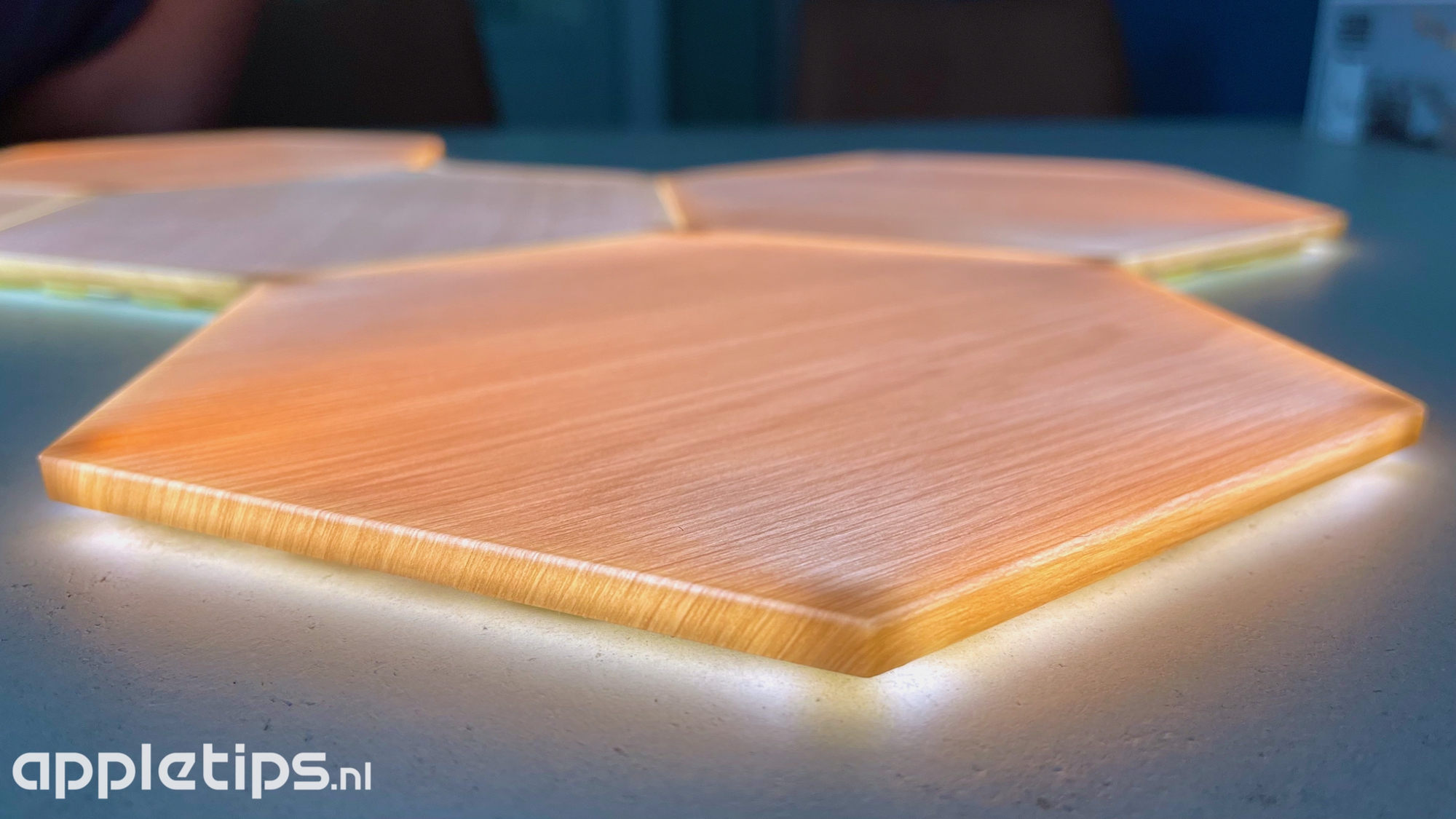 De Nanoleaf Elements zijn de eerste ledpanelen van het bedrijf met een natuurlijke uitstraling. De houtnerf is uitstekend uitgevoerd en loopt helemaal door tot aan de zijkant zonder lelijke naad of overgang.