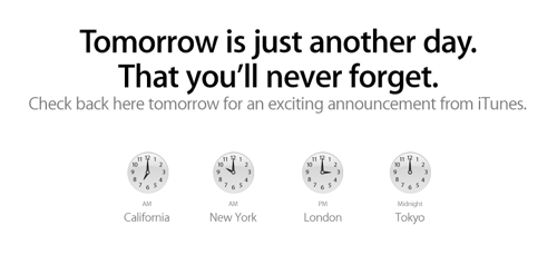 Op de apple website is vanmiddag de onderstaande melding verschenen: Blijkbaar heeft Apple voor ons morgen (16/11) een spannende aankondiging in petto die betrekking heeft op iTunes. “Tomorrow is just another day. That you’ll never forget”, morgen omstreeks 16.00 uur Nederlandse tijd zal duidelijk worden wat we nooit meer zullen gaan vergeten. (meer…)lees verder ▸