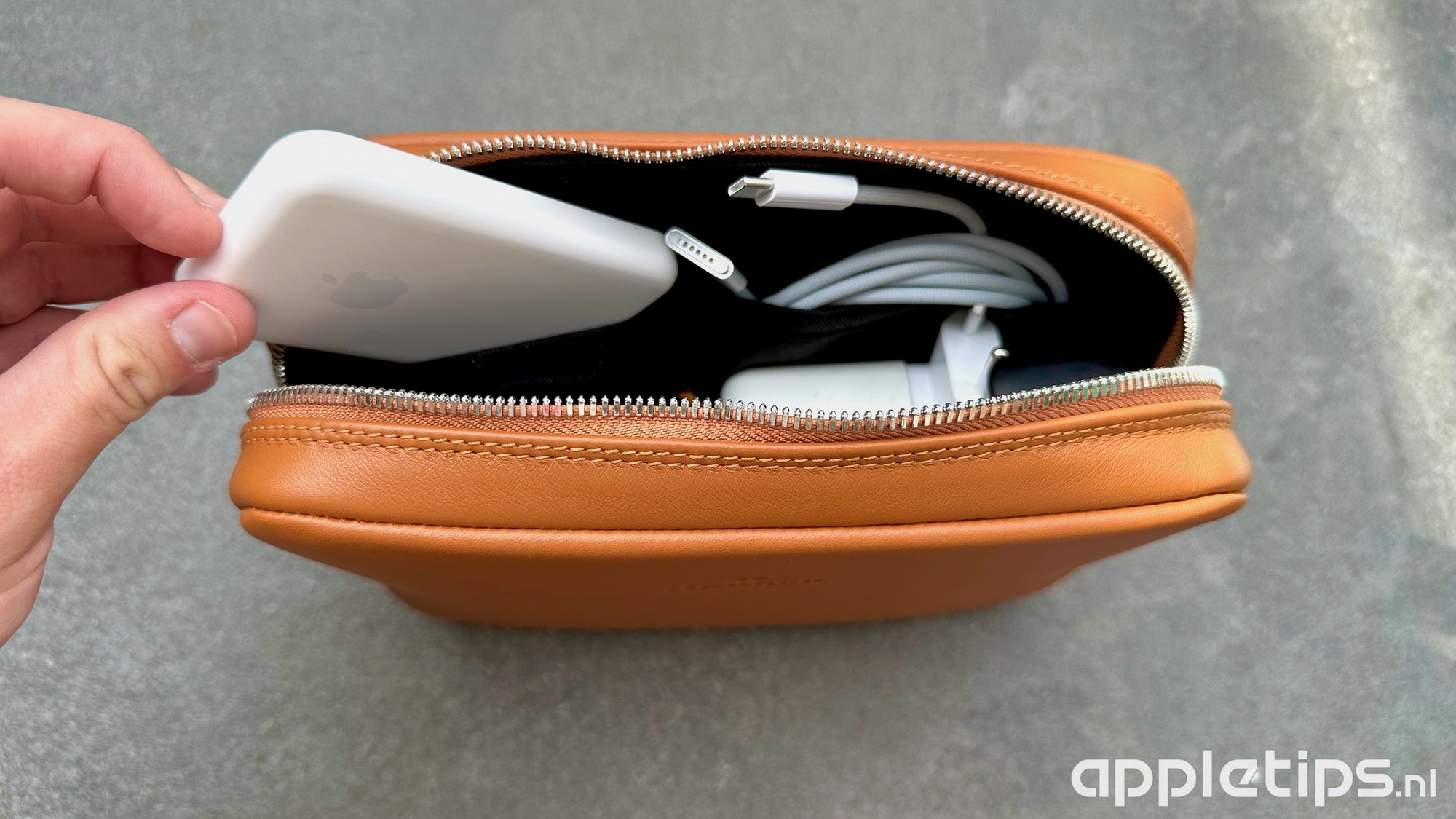 De Tech Dopp Kit van Harber London is voorzien van een flink aantal vakken, lussen en opbergmogelijkheden voor je Apple kabels, opladers en accessoires. Zo past de Apple Pencil, 16-inch MacBook Pro oplader en MagSafe-oplaadkabel er prima in. Ook de externe MagSafe batterij en AirPods Pro vinden hun plekje in de opbergtas.