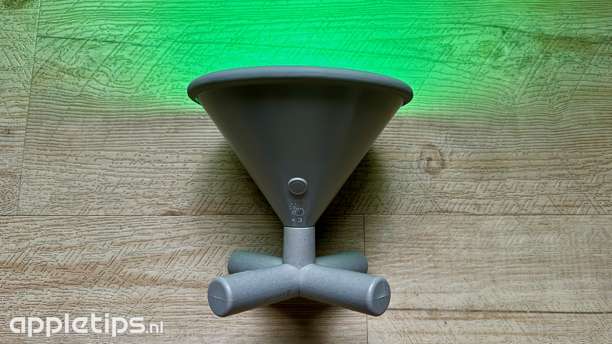 In principe werkt de Cono onmiddellijk vanuit de doos dankzij de touchknop op de lamp zelf. Hiermee kun je de lamp in- en uitschakelen (één keer tikken), kiezen tussen warm wit, koel wit en 4 RGB-kleuren (dubbeltikken) of lang ingedrukt houden om het helderheidsniveau aan te passen. Wanneer je meer vrijheid wil, is het aan te raden de Cono te koppelen aan de Nanoleaf-app of een Matter hub.