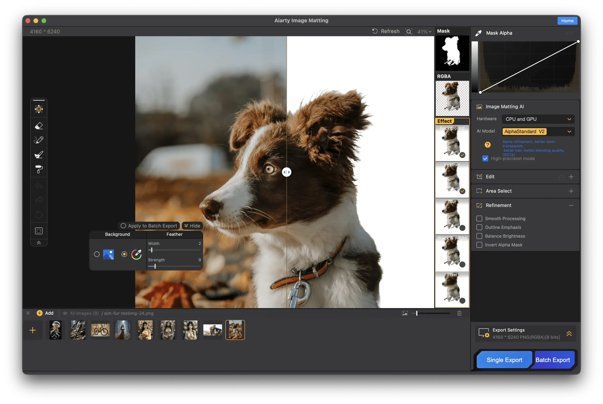 Aiarty Image Matting onderscheidt zich van zijn concurrenten door zijn krachtige functies, die zijn ontworpen om het verwijderen van achtergronden moeiteloos en snel te maken. De kern van de software maakt gebruik van geavanceerde AI-modellen om ongeëvenaarde precisie en veelzijdigheid te bieden.