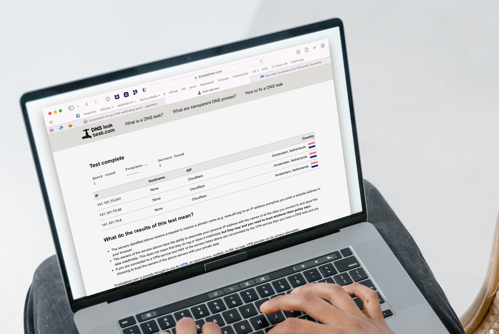 - Soms kun je met een IP-test geen DNS-lek detecteren. Het is ook belangrijk op DNS-lekken te checken, omdat deze je identiteit ook kunnen onthullen. Op de website DNSLeakTest kun je een DNS-lektest doen.